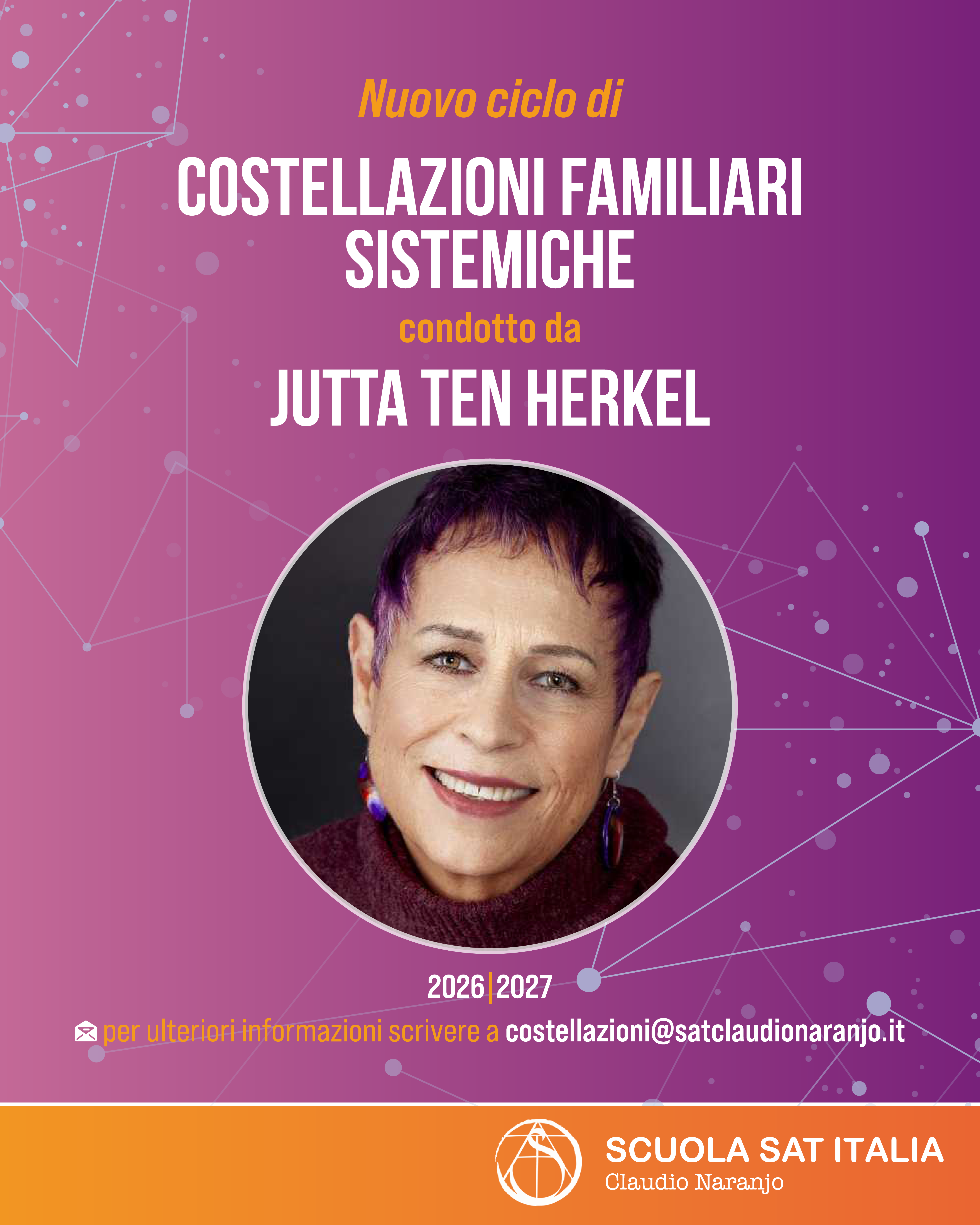 Ciclo di incontri Costellazioni familiari-sistemiche condotto da Jutta Ten Herkel Jutta Ten Herkel, collaboratrice dalla Scuola Sat, allieva di Claudio Naranjo, terapeuta sistemico-familiare e costellatrice formata con Bert Hellinger. Quattro incontri residenziali, ogni modulo conterrà elementi metodologici e teorici a sostegno e complemento della parte …